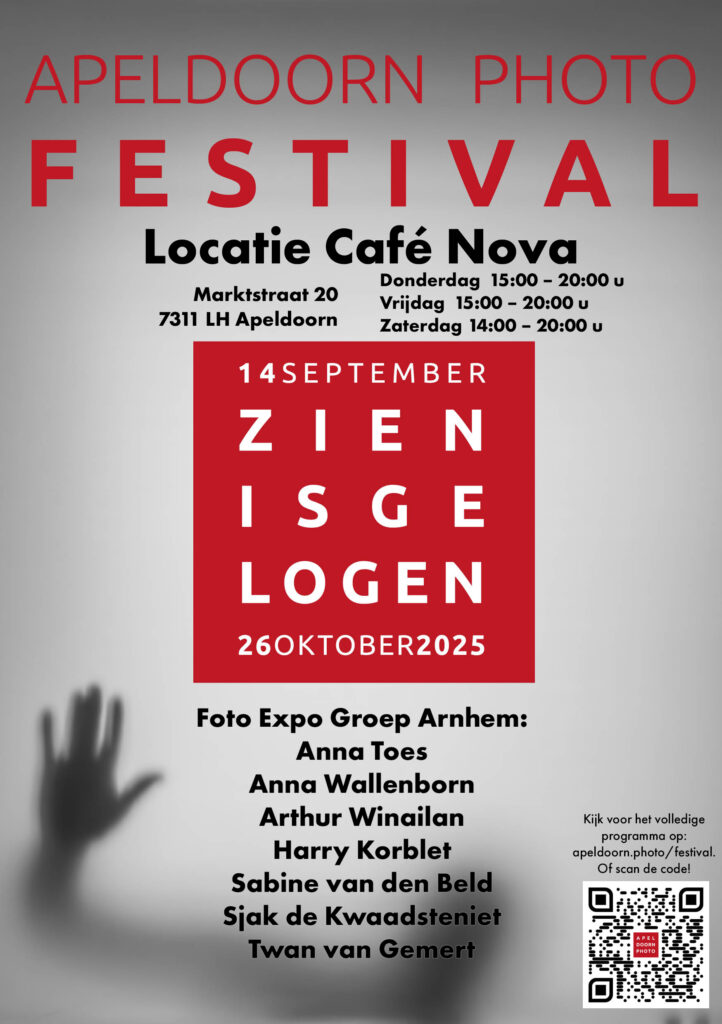 Tussen 14 september 2025 en 26 oktober 2025 exposeert de Foto Expo Groep Arnhem in café Nova tijdens het APELDOORN.PHOTO ‘Zien is Gelogen’ festival.